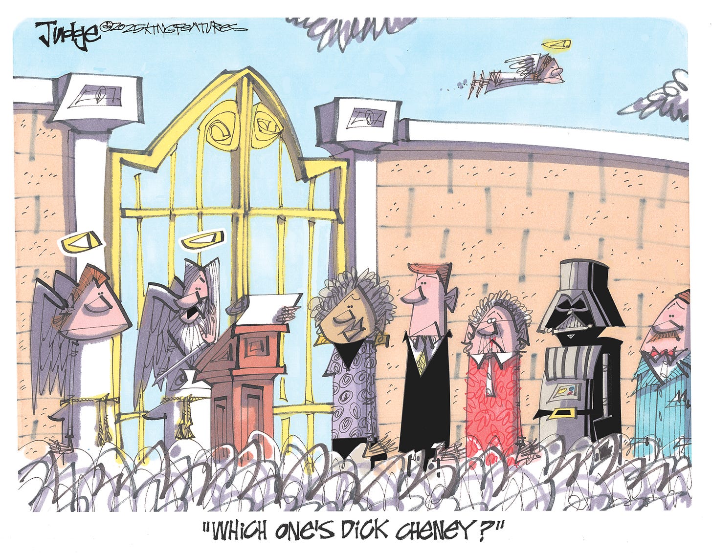 Richard “Dick” Cheney (seen here thinking about that J.D. Vance/kitten scenario) was widely seen as the architect behind the wars in Afghanistan and Iraq which lasted 20 years and killed approximately 7,000 US soldiers. It also ended with the Taliban back in charge of Afghanistan and according to the internet “numerous wars, corruption, and civil and ethnic conflict in Iraq have made it difficult for a stable democratic government to emerge.”