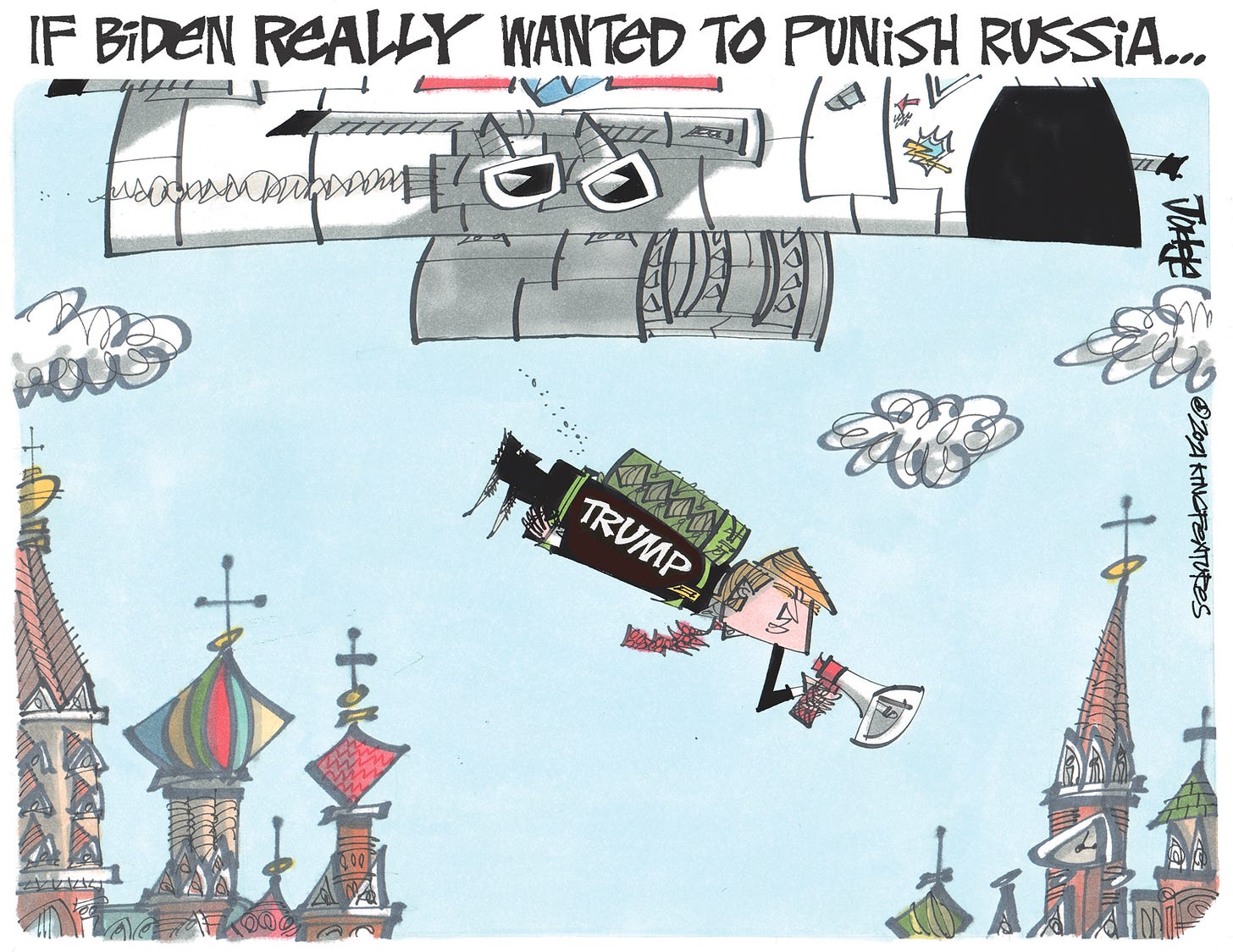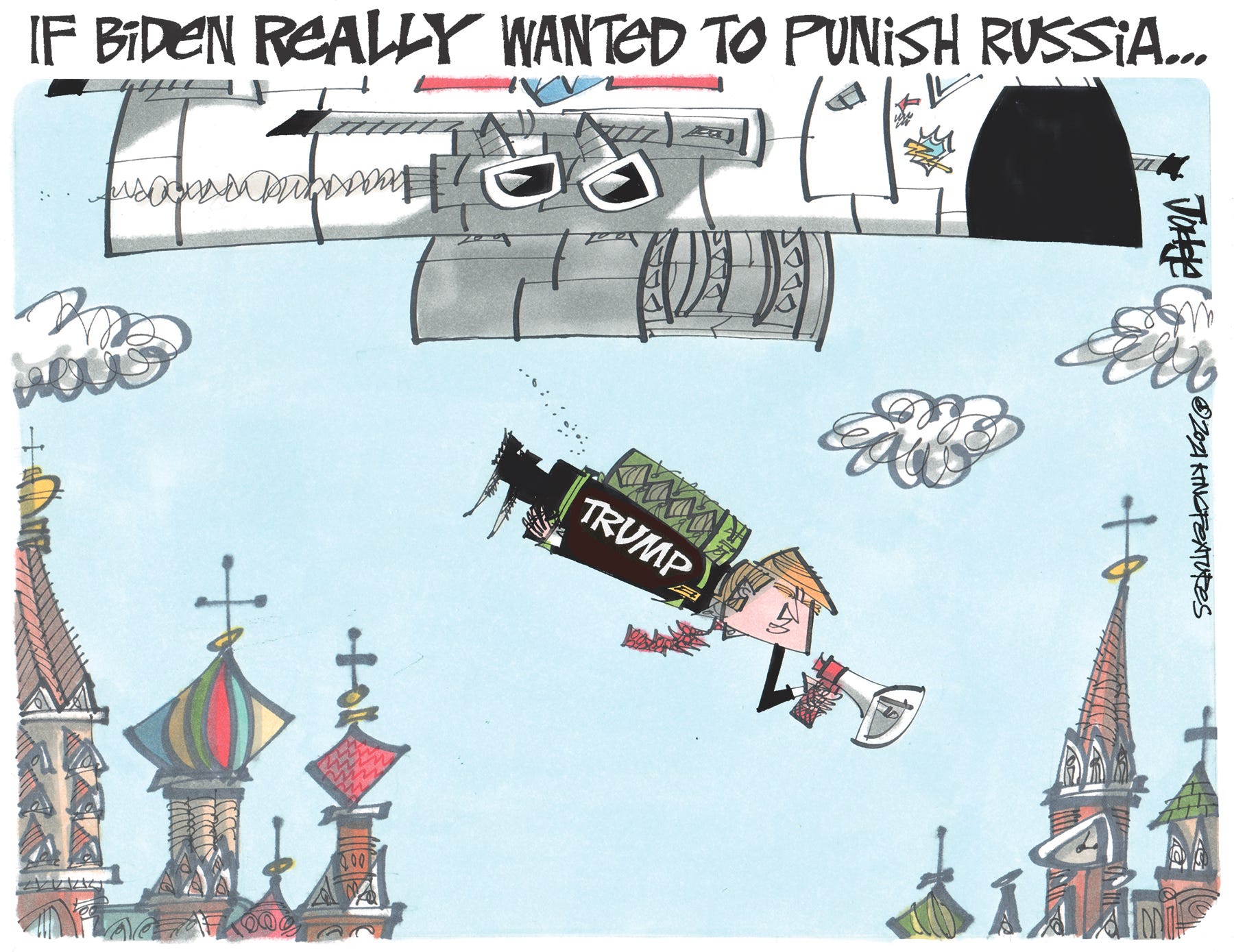 All of which led to the cartoon at the top of this post: if Joe Biden really wants to punish Russia he should have air-dropped Trump into Red Square and made Vladimir Putin listen to Trump’s complaints.