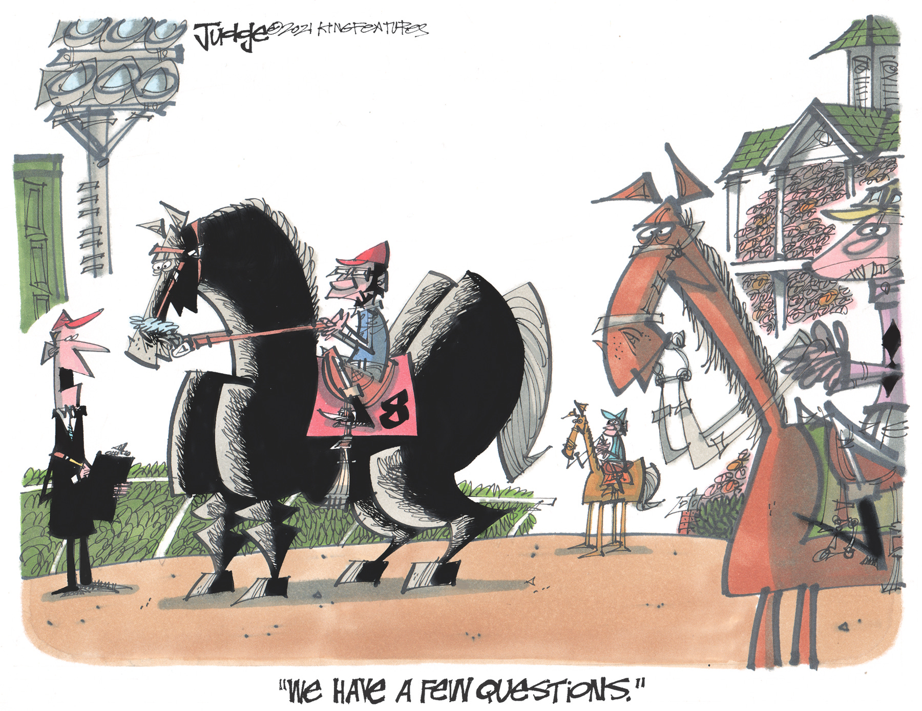 "So now even our Kentucky Derby winner, Medina Spirit, is a junky. This is emblematic of what is happening to our Country. The whole world is laughing at us as we go to hell on our Borders, our fake Presidential Election, and everywhere else!"