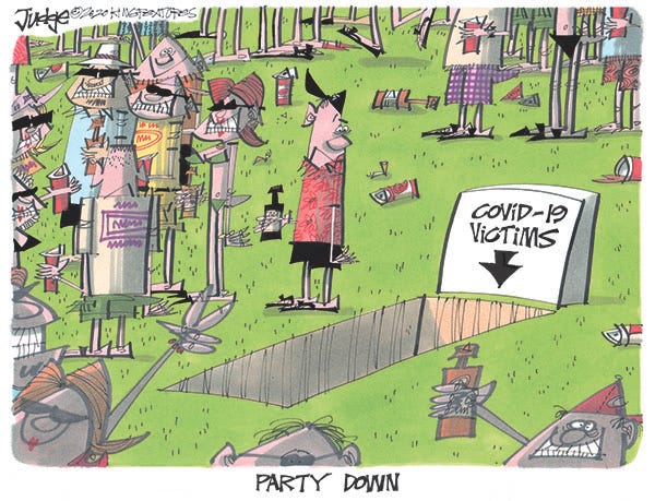 People see stuff like that and decide maybe they’ll hold out a bit longer until natural selection wipes a few more knuckleheads out of the herd. (Unfortunately, the knuckleheads might survive the coronavirus and manage to transmit COVID-19 to somebody who behaved a little more responsibly.)