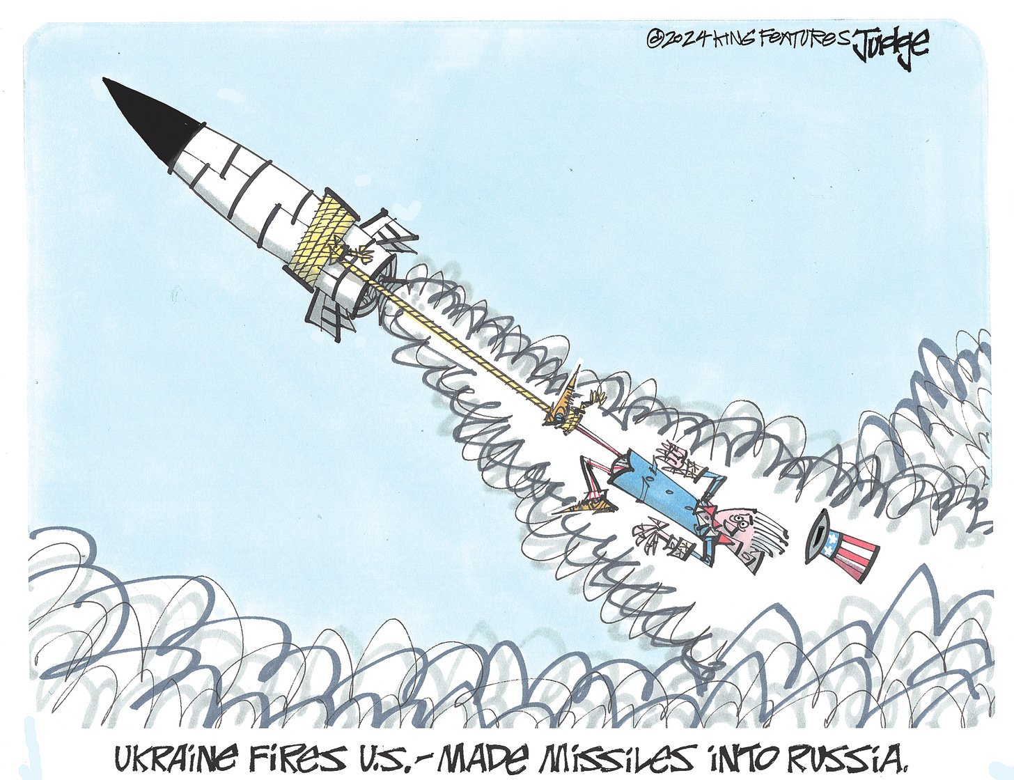 In a major shift in policy, lame-duck President Joe Biden gave Ukraine permission to shoot U.S.-made missiles into Russia while on the same day Vladimir Putin said he was lowering the threshold for using nuclear weapons, so do the math and we’ve got a guy who isn’t sure what day it is playing chicken with a former KGB officer and we’re all along for the ride.
