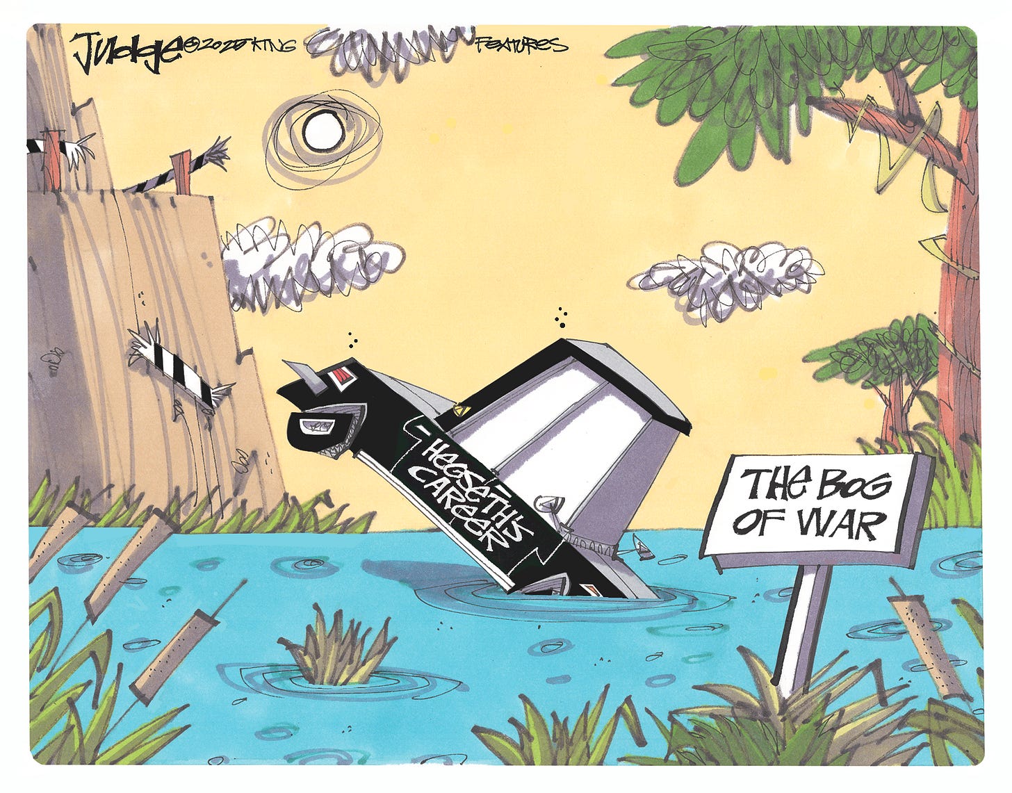 Hegseth tried to excuse the war crime on the “fog of war” which I changed to the “bog of war” because people are now calling for him to resign.